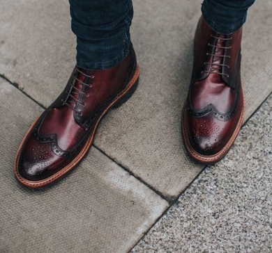 Top Fashion Hand Stitch Burgundy Ankle High Boot, Wingtip Brogue Rangers Lace Up Leather Boot