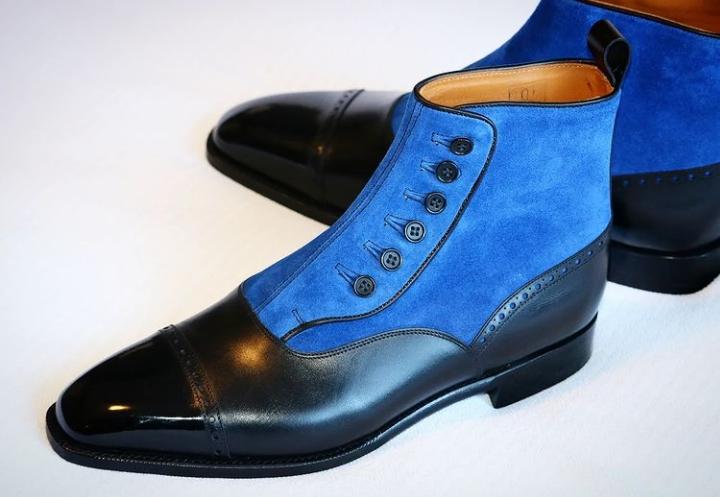 Best Hand Stitch Two Tone Leather Suede Button Boot