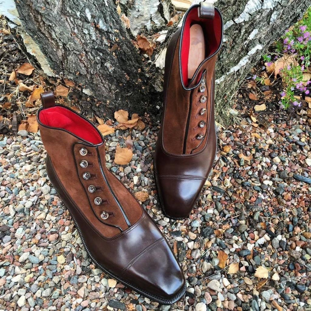 Men's New Handsome Looks Attractive Style Natural Brown Leather Suede Button Boot, Handmade Ankle Boot