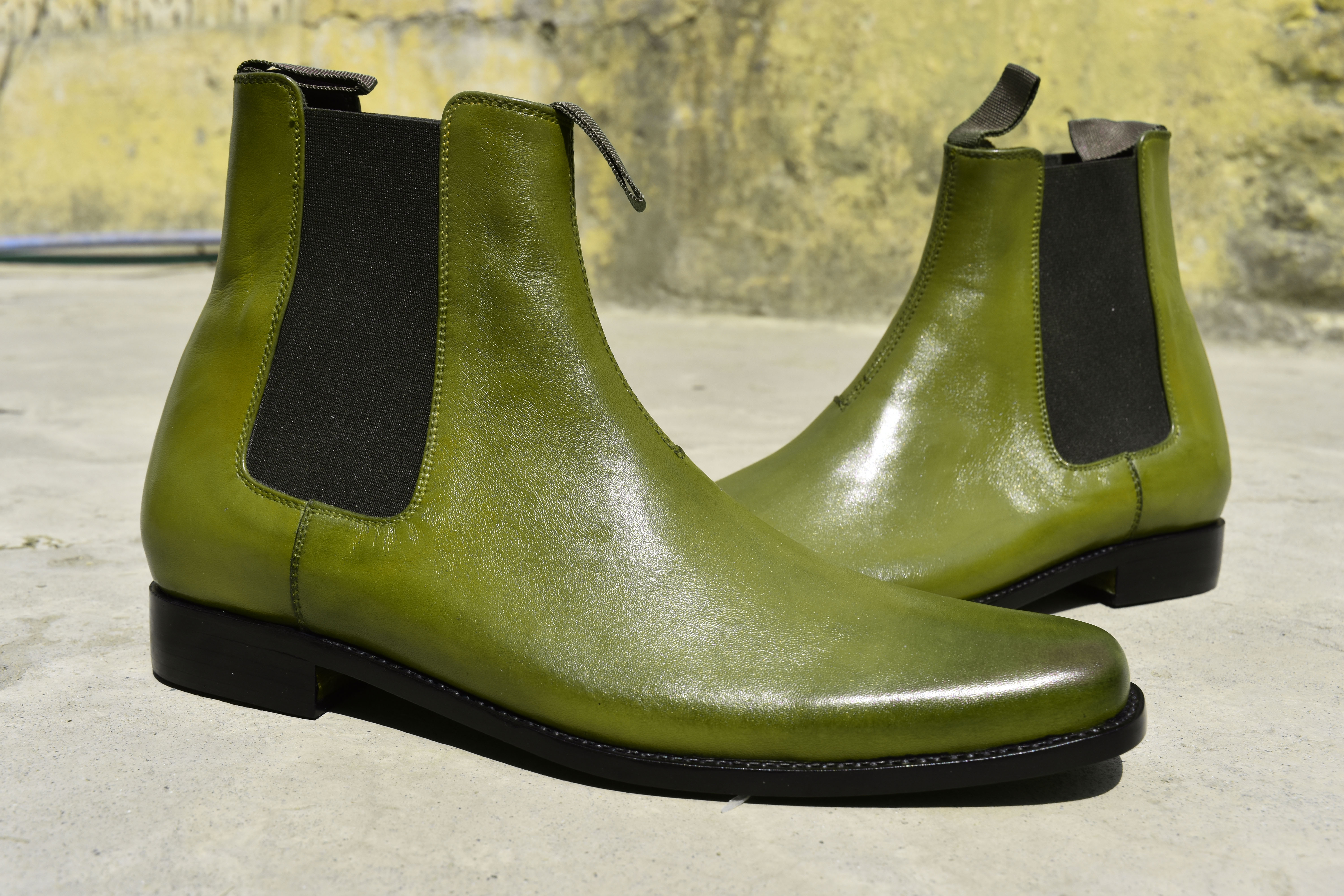 Men's Olive Leather New Color Ankle High Handmade Chelsea Boot