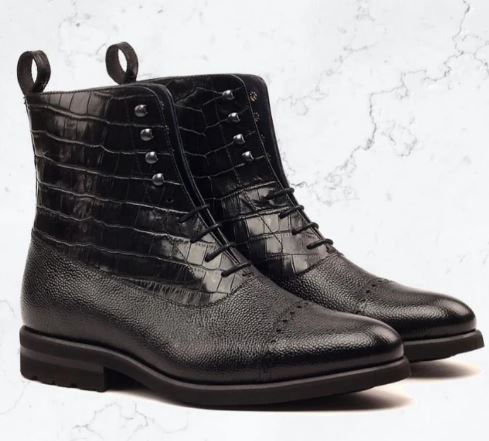 Attractive Black Leather Alligator Skin Touch Handmade Outstanding Boot