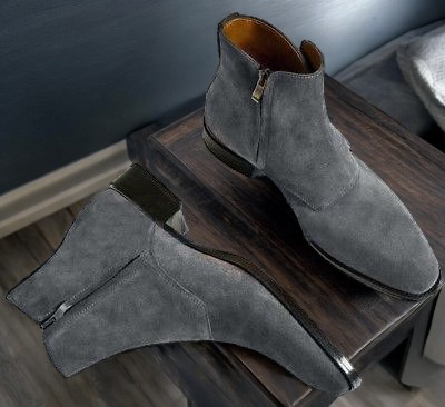New Edition Gray Suede Buckle Boot For Summers Season Handmade Ready
