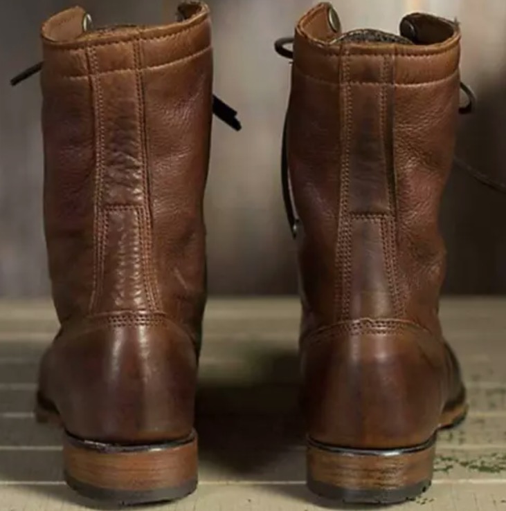 Men Punk Motorcycle Brown Leather Boots Military Lace up Combat Handmade Boot