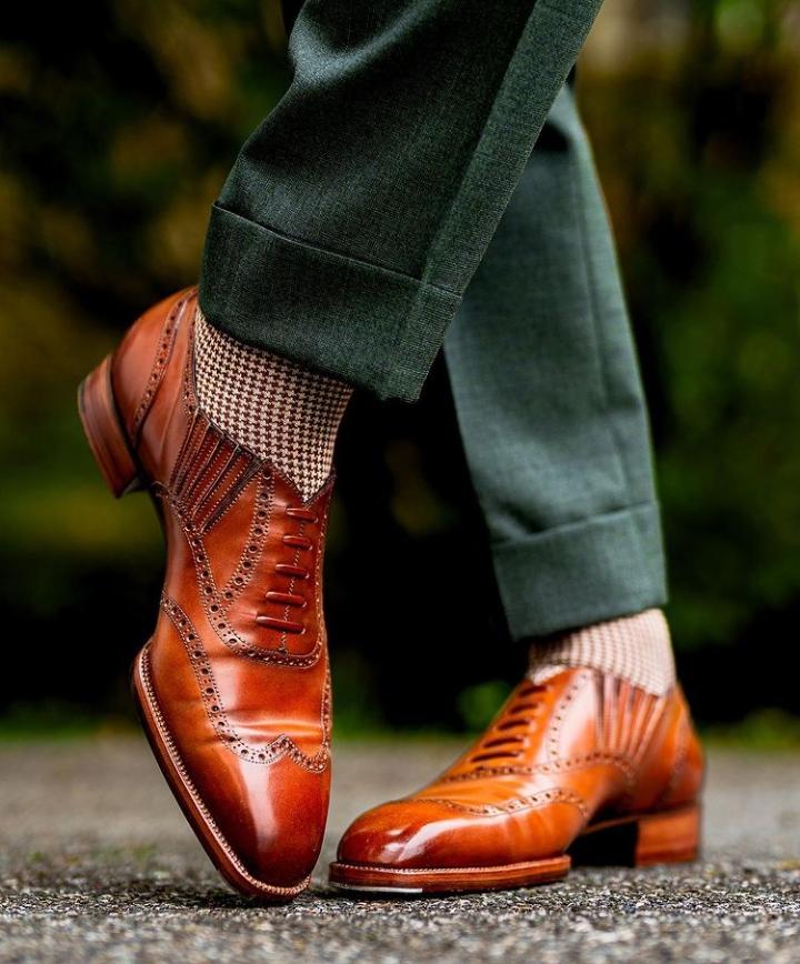 Latest Men's Hand Made Oxfords Brown Wingtip Shoes, Brogue Leather Lace Up Shoes