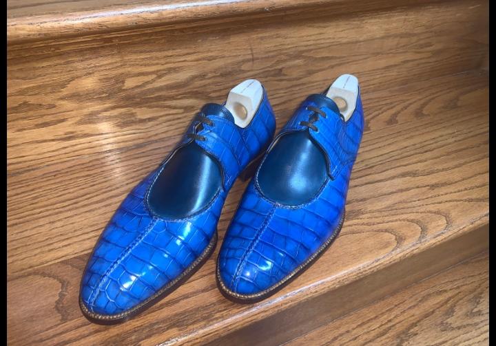 Handmade Men's Best Designs New Edition Blue Alligator Skin Holidays Travelling Shoes