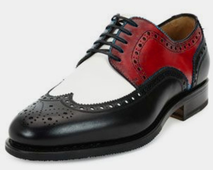 Men Formal Wear Black Red White Leather Contrast Wingtip Oxford Custom Handmade Shoes