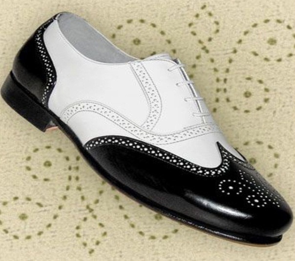 Luxury Men's Hand Stitch Black White Oxfords Wingtip Brogue Leather Wedding Shoes