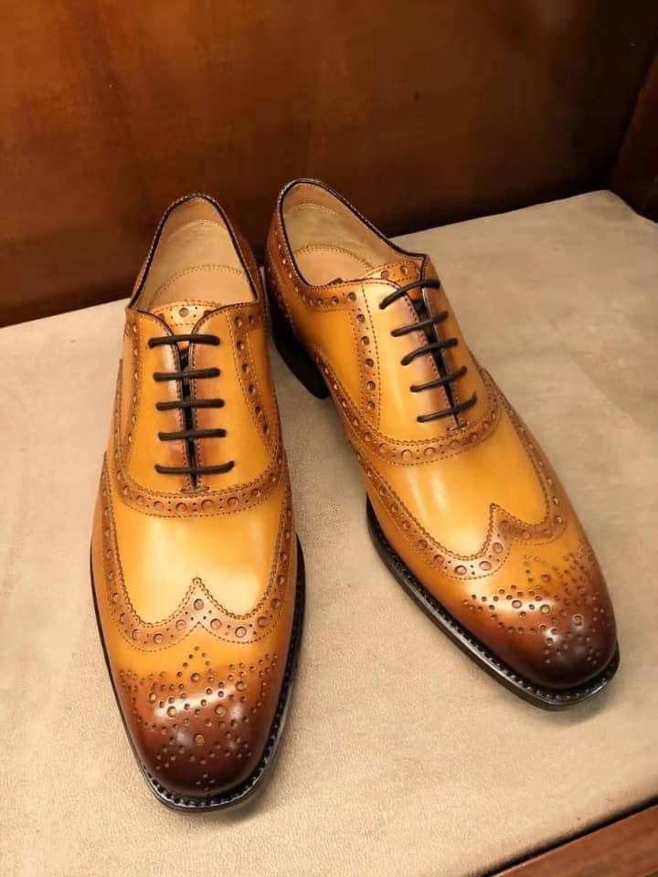 Hand Stitch Men's Brown Wingtip Brogue Shoes, Lace Up Leather Shoes
