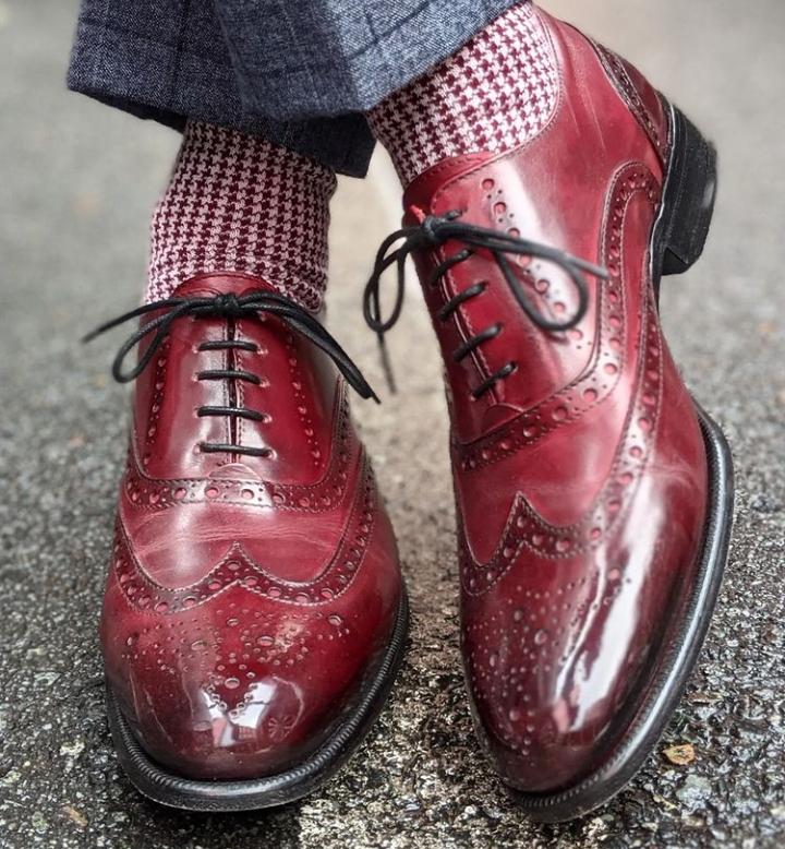 Men's Burgundy Leather Oxfords Wingtip Formal Summer Wear Laceup Shoees