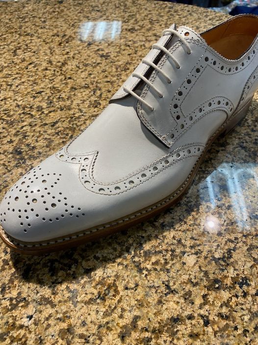 Men's White Leather Oxfords Wing Tip Formal Wedding Wear Laceup Shoes