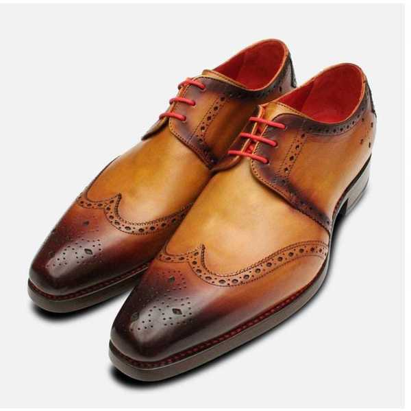 Classic Men's Hand Stitch Attractive Two Tone Shoes, Lace Up Formal Leather Shoes