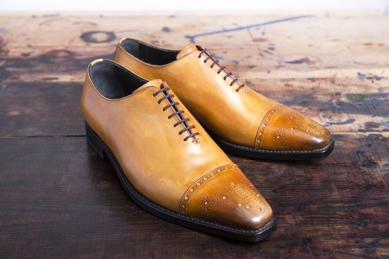 Men's Outstanding Tan Leather Cap Toe Brogues Wedding Shoes Dress Laceup Shoes