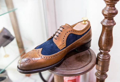 New Design Handmade Men's Brown Navy Blue Wingtip Lace Up Dress Shoes For Gentlemen's