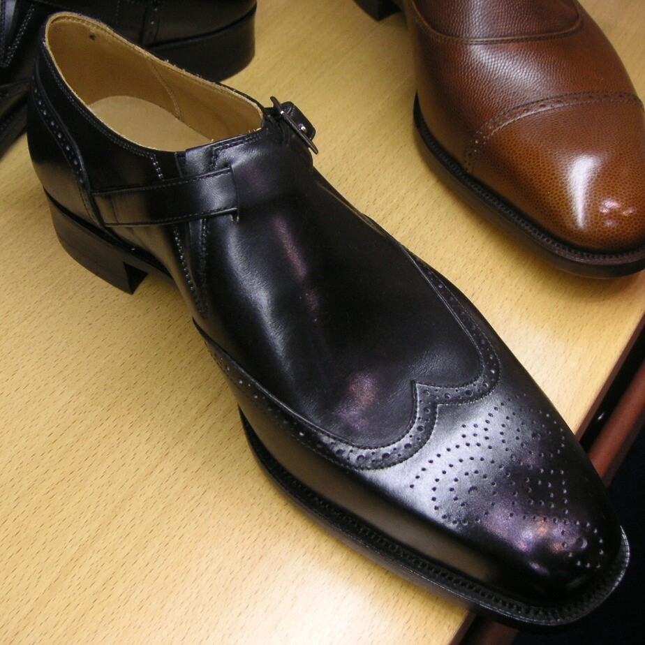 Men's Black Wingtip Monk Strap Dress Handmade Shoes