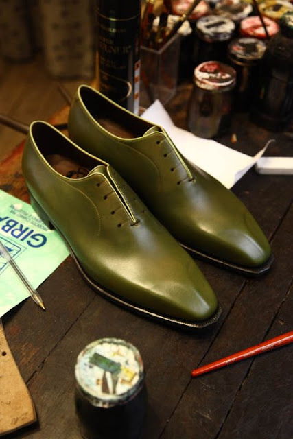 Men's Olive Polishing Leather Dress Handmade Shoes