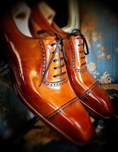 Unique Style Men's Hand Stitch Oxfords Brown Cap Toe Leather Lace Up Shoes