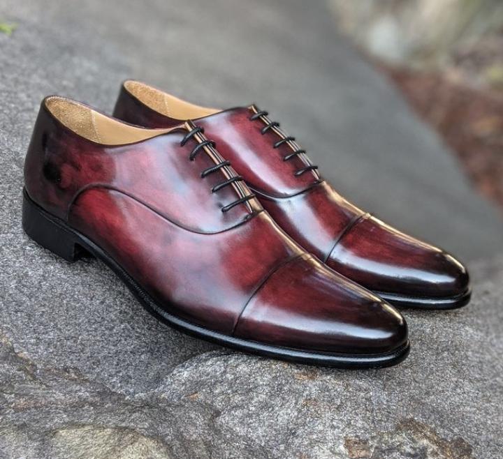 Trendy Men's Handmade Burgundy Black Shoes, Cap Toe Genuine Leather Lace Up Shoes