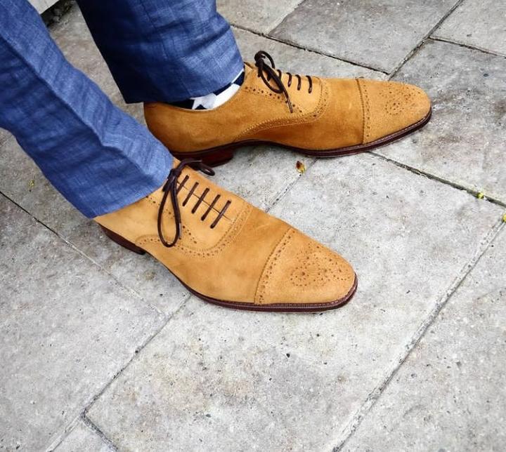 Awesome Wear Men's Hand Stitch Tan Brown Cap Toe Lace Up Shoes