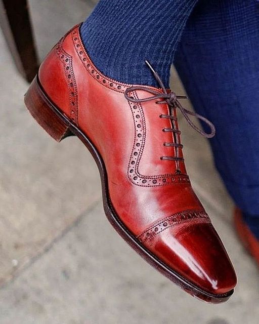 mens reddish leather oxfords cap toe dress handmade formal wear shoes