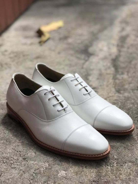 Men's Decent Choice White Leather Cap Toe Dress Shoes For Handmade Lovers