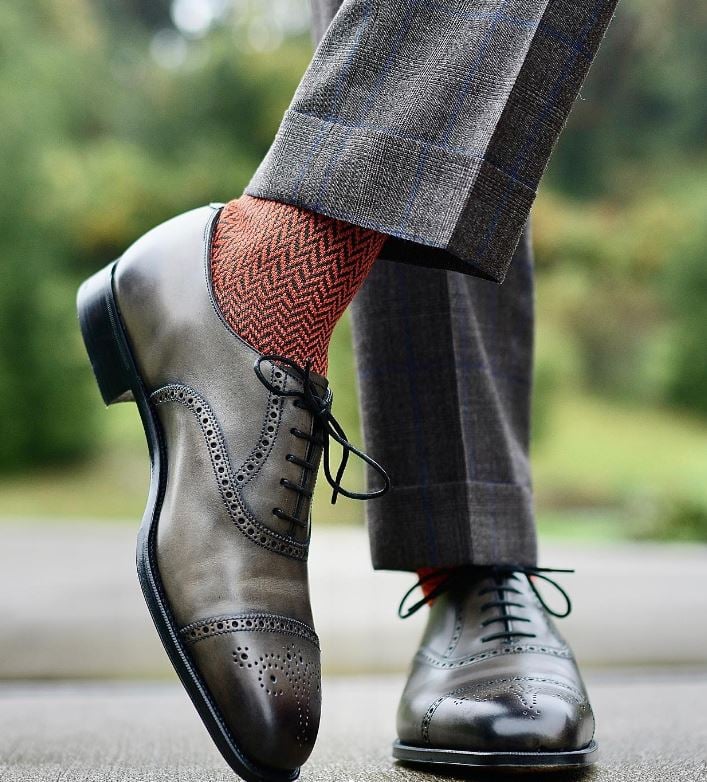 Grey Leather Base Two Tone Polishing Oxfords Captoe Lace Up Shoes