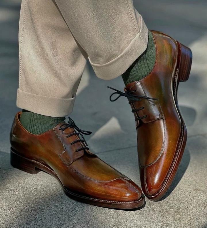 Awesome Wear Men's Brown Split Toe Genuine Leather Shoes, Lace Up Wedding Shoes