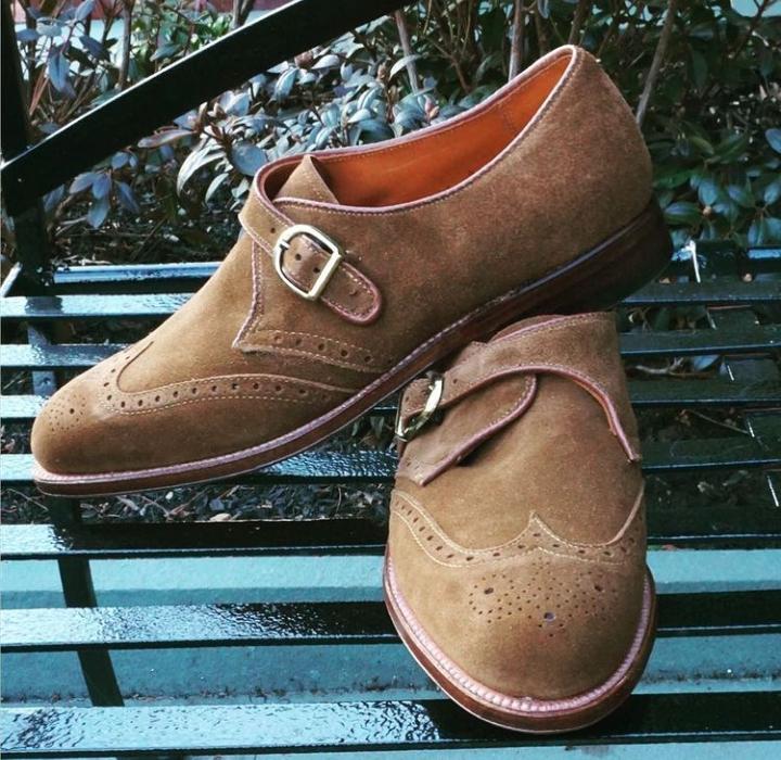 Classic Men's Hand Stitch Natural Colour Shoes, Single Monk Suede Formal Shoes