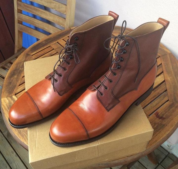 Hand Made Two Tone Cap Toe Ankle High Leather Rangers Boot