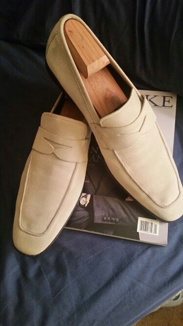 Handmade Men's Sand Suede Penny Loafers Slips On Moccasin Shoes