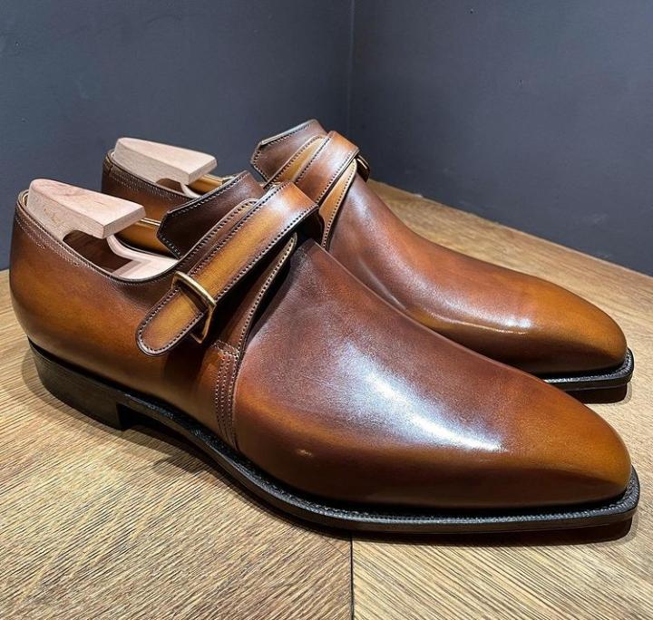 Best Hand Stitch Brown Single Monk Strap Genuine Leather Formal Shoes