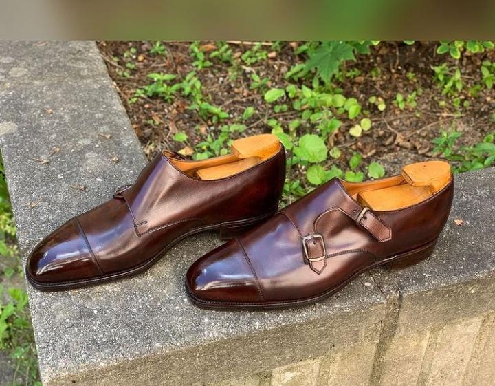 Awesome Wear Brown Double Monk Strap Shoes, Genuine Leather Wedding Shoes
