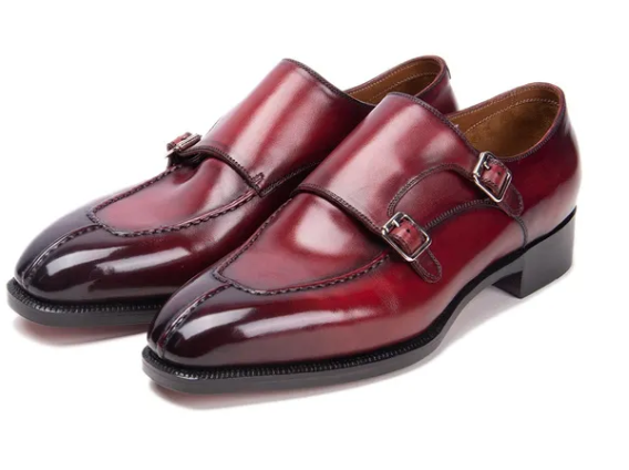Men's Handmade Burgundy Color Split Toe Style Double Monk Dressing Shoes