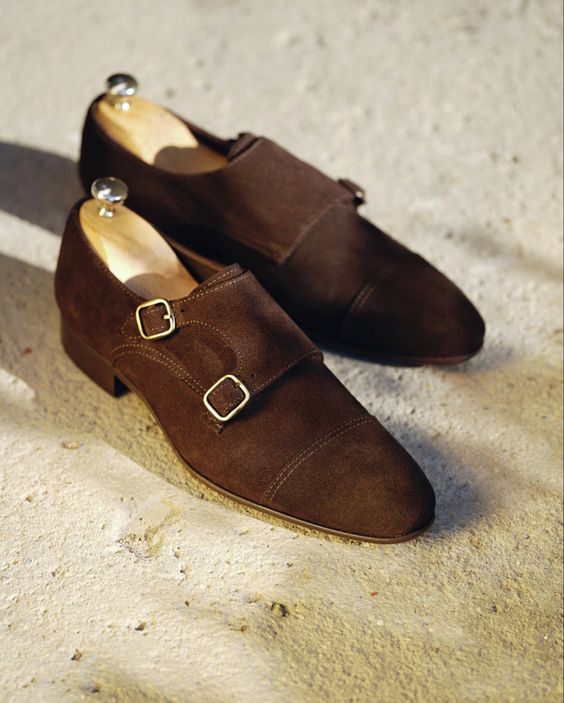Limited Edition Coco Brown Suede Double Monk Cap Toe Dress Shoes