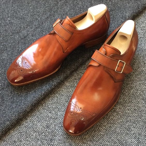 Men's Handmade Tan Leather Brogue Dress Formal Shoes