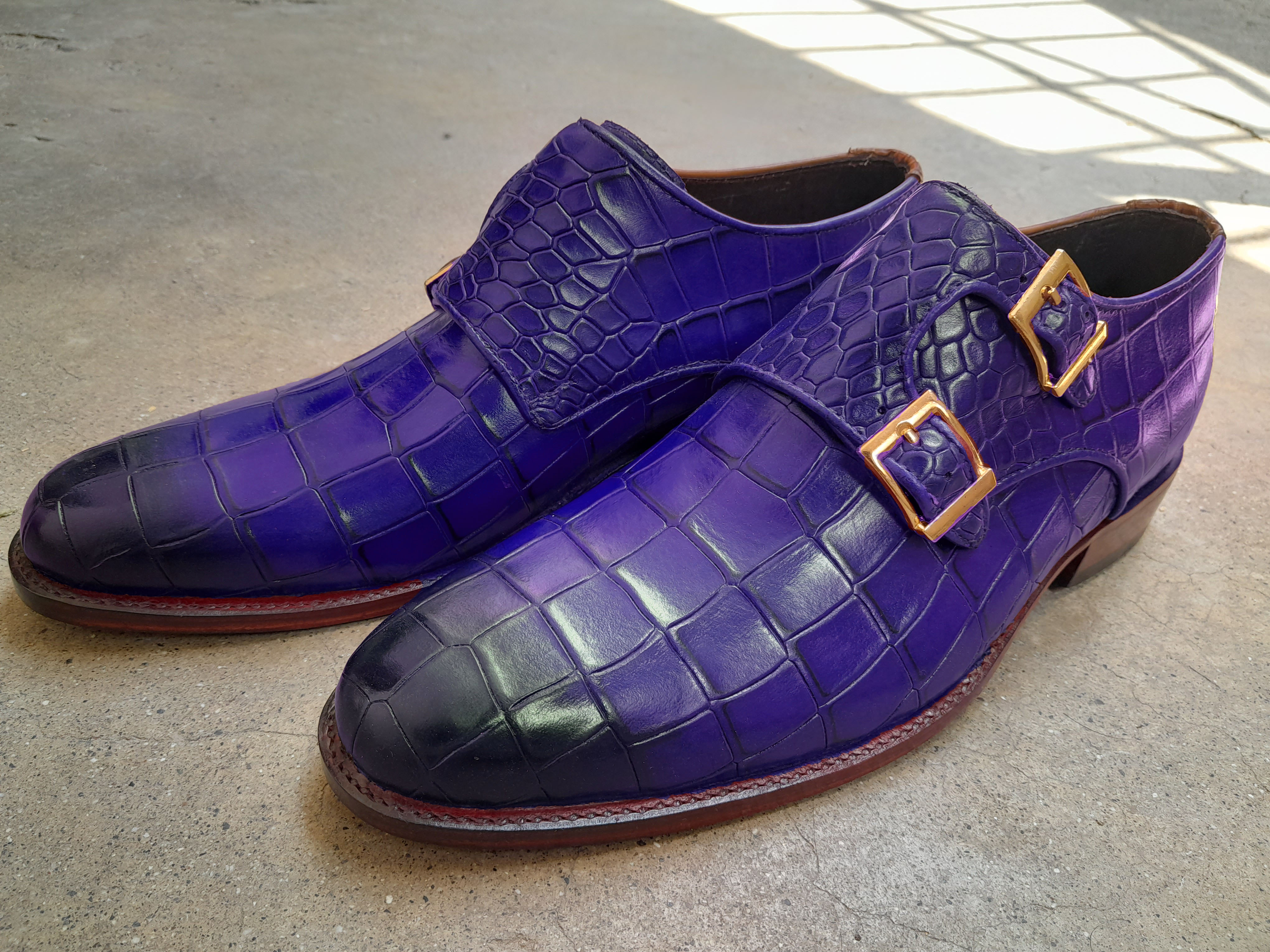 Really nice finishing handmade men's royal bue alligator skin texture crocodile shoes