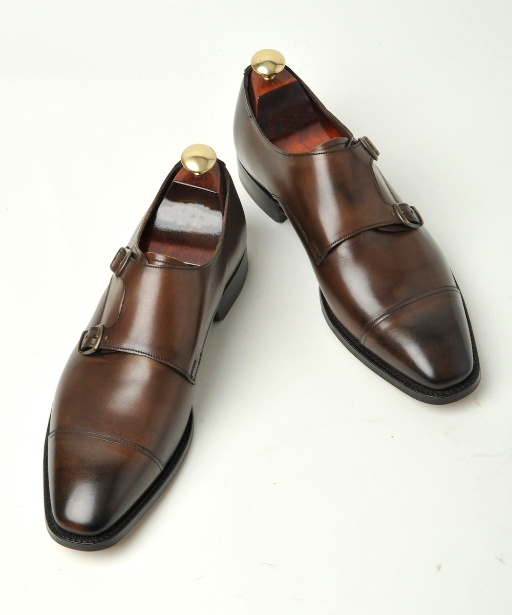 Twotone Polishing Handmade Brown Double Monk Strap Shoes Men's