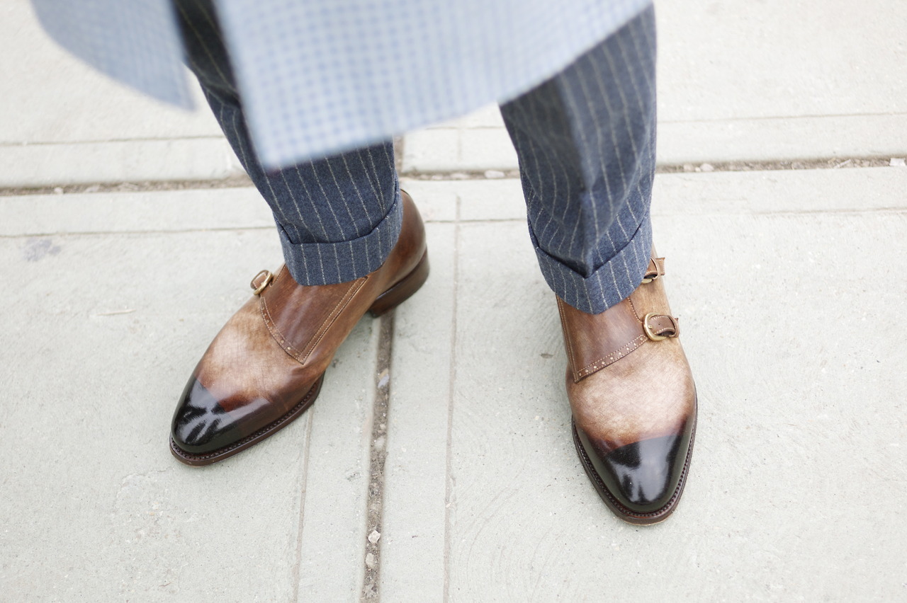 Customize Design Patina Touch Two Tone Double Monk Shoes Handmade Formal Shoe