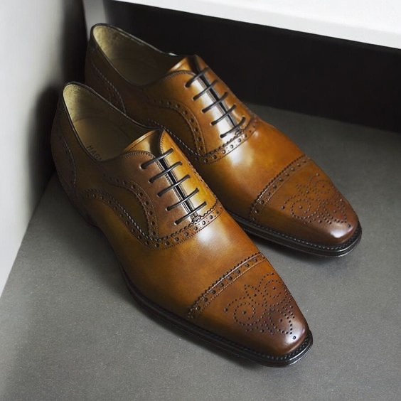 Handmade Brown Beautiful Brogue Oxfords Formal Wear Office Wear Shoes