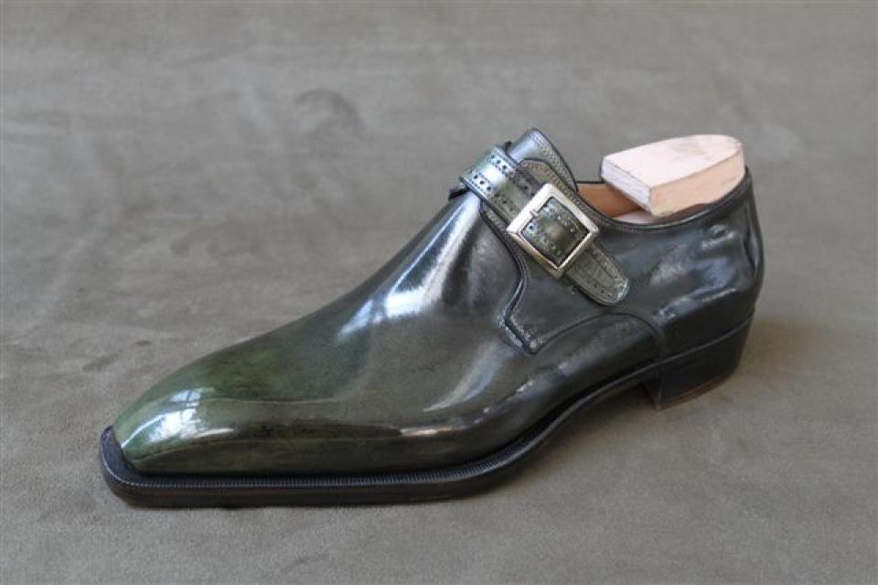 Handmade Men's Green Monks Stylish Dress Formal Shoes