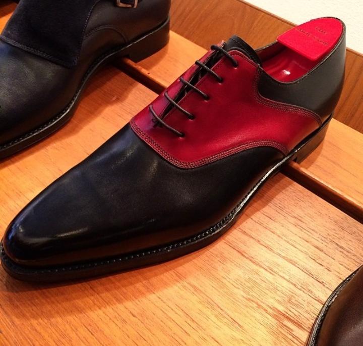 Top Fashion Red Black Contrast Genuine Leather Lace Up Occasional Shoes