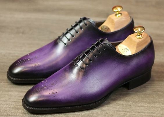 Men's Purple Leather Two Tone Handmade Lace Up Dress Shoes