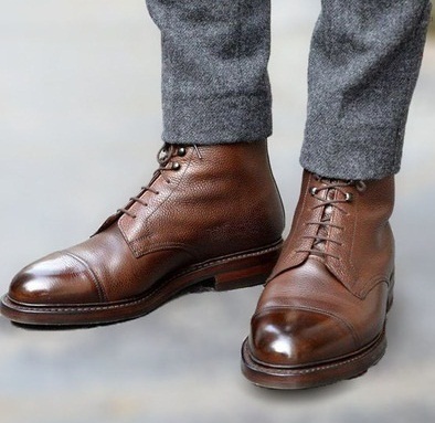 Men Handmade Brown Hand Stitch Leather Cap Toe Style Ankle High Men's Formal Lace Up Boot