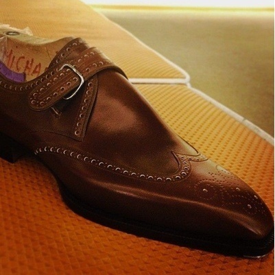 Men Dark Brown Beautiful monk Strap Wingtip brogue Formal Shoes Handmade Edition