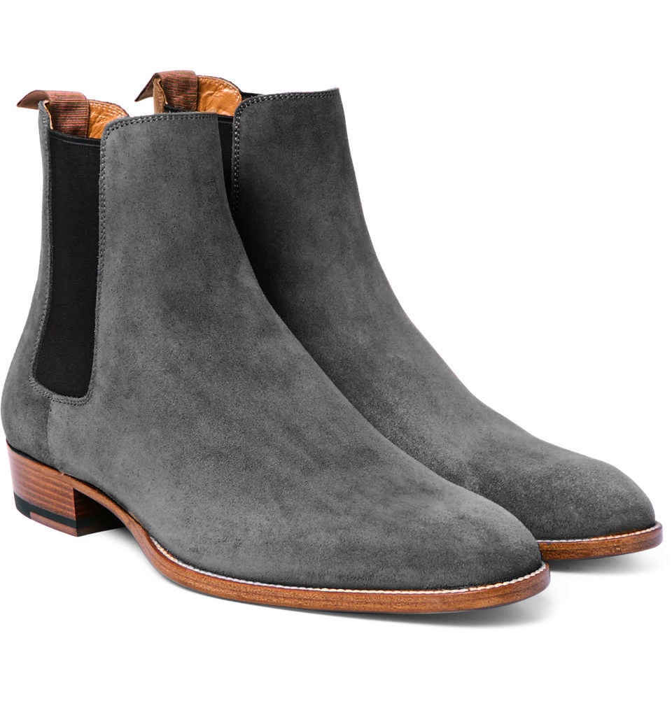 Men's Grey Suede Ankle High Simple Unique Design Handmade Chelsea Dress Boot