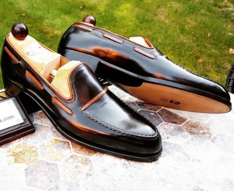 Men Twotone Leather Penny Loafer Style Handmade Wedding Wear Shoes