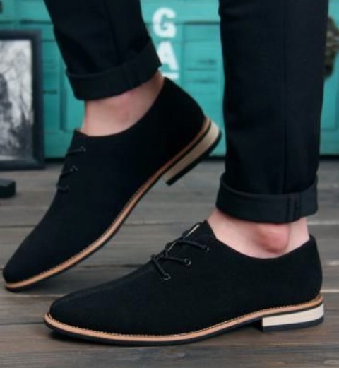 Simple And Unique Black Suede Men Hand Made Lace Up Formal Shoes