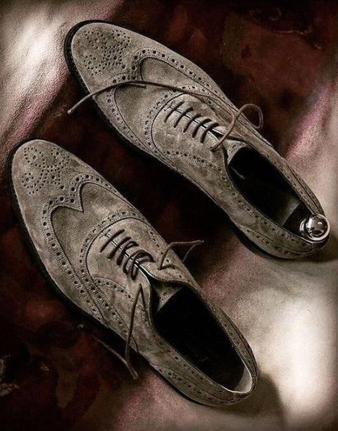 Men Decent Choice Grey Oxfords lace Up Shoes, men Handmade Wingtip Lace Up Shoes