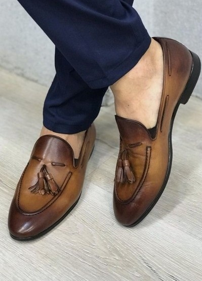 Luxury Men's Handmade Two Tone Tassels Loafers Style Shoes, Hot Sale Leather Casual Wear Shoes