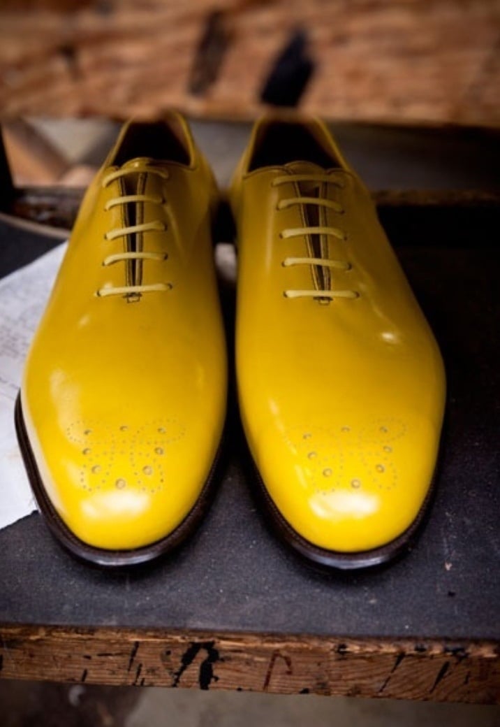 Men's Casual Summers Brogue Toe Hand Made Yellow Lime Leather Laceup Outclass Shoes