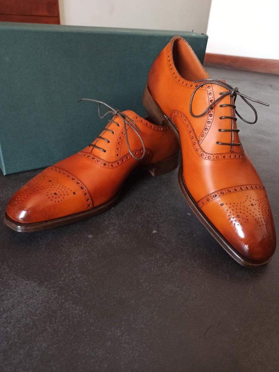 Unique Decent Men's Brown Oxfords Cap Toe Brogue Leather Lace Up Office Wear Shoes